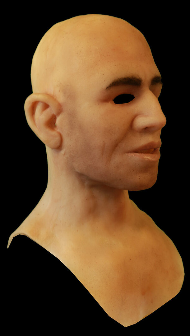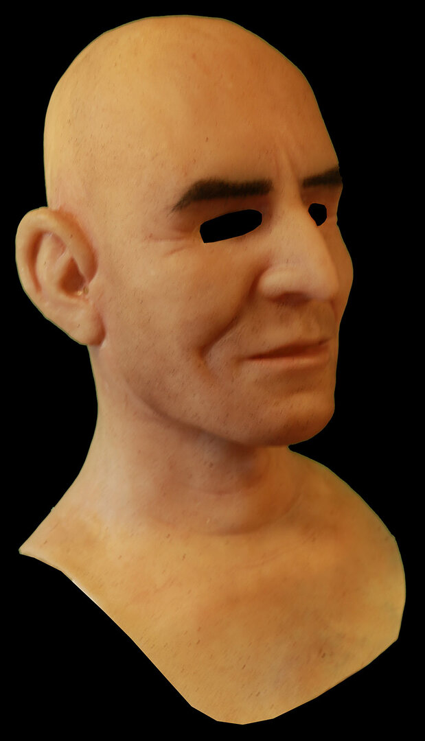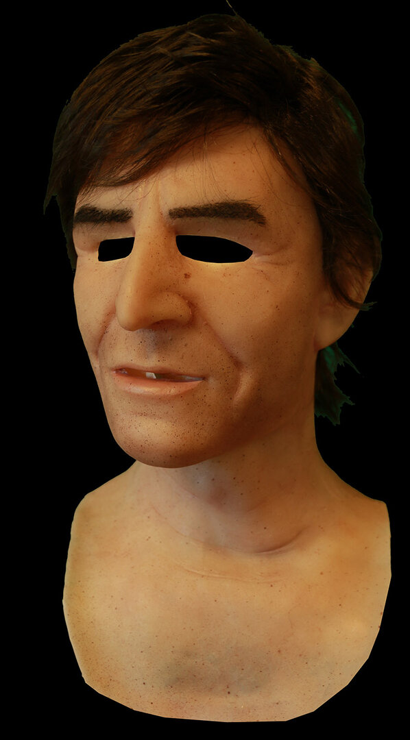 MASCHERA IN SILICONE AL PLATINO CON BARBA E PARRUCCA PROFESSIONALE